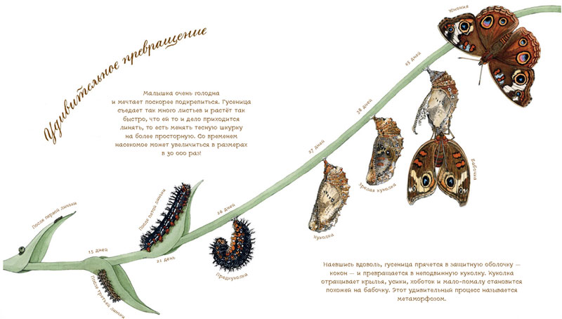 Как бабочки появляются на свет? Чем питаются? Как устроены их крылья? Какие бабочки называются дневными, а какие ночными? На каждом развороте вас ждут интересные факты и прекрасные иллюстрации.