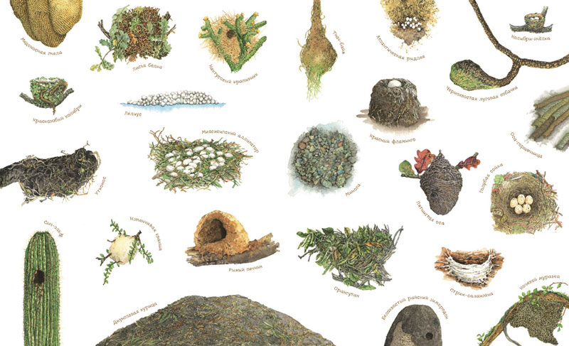 В этой книге вы сможете в подробностях рассмотреть гнезда животных, которые обычно скрыты от наших глаз — в ветвях деревьев, под землей, в траве...