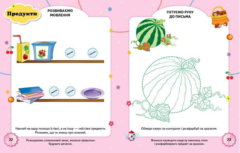 Заняття за цією книгою сприяють розвитку уваги, пам'яті й мовлення малюка, готують руку до письма, активізують логічне і творче мислення.